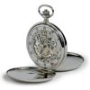 Chrome Plated Mechanical Skeleton Double Hunter Polished Pocket Watch