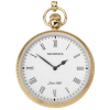 Practical and stylish, everyday wear pocket watch in gold plated case with white dial from Sekonda. This open face classic piece has coin edge with roman numerals indexing and finished with a chain & special clasp fixture.